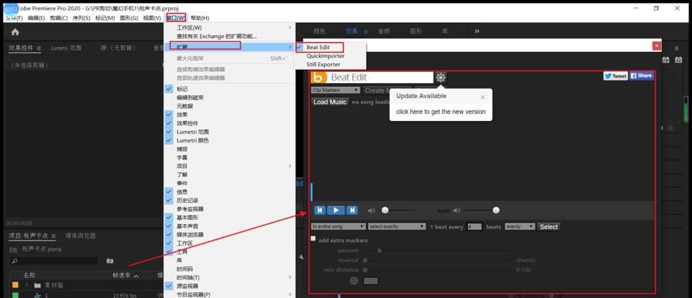 8、再次打开PR,这时候Beat Edit插件就可以打开了。