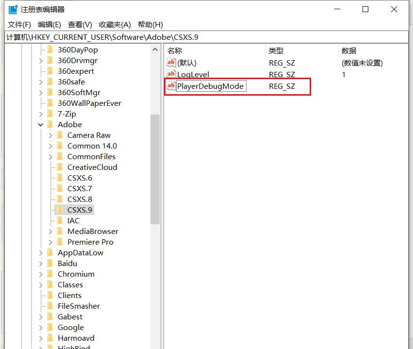 5、鼠标右键,新建【字符串值】。输入:PlayerDebugMode,可以去前面的文件夹里面复制名字。