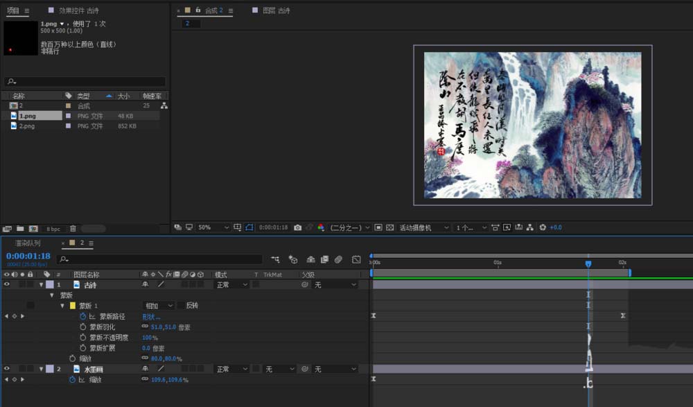 以上就是AE制作水墨画显示文字动画效果的教程,希望大家喜欢,请继续关注武林网。