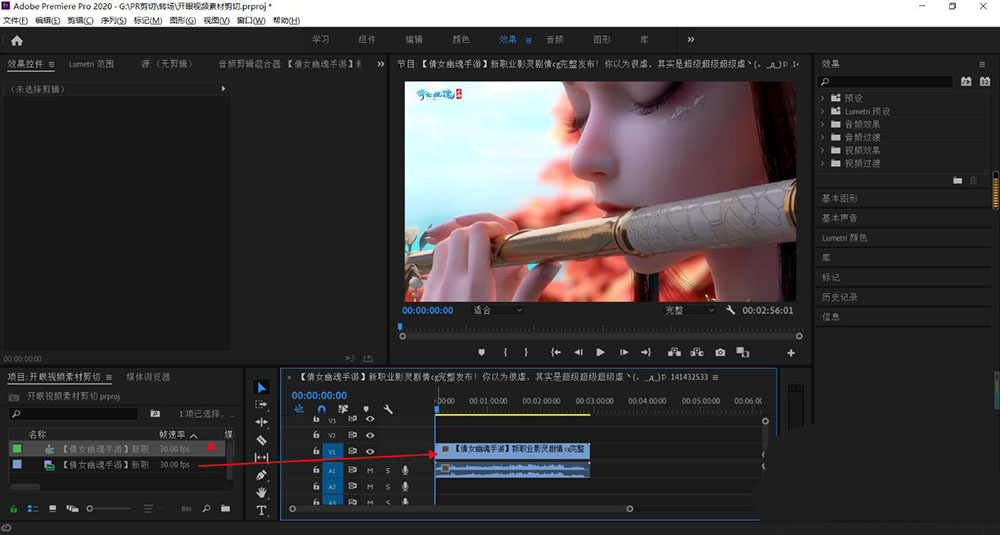2.素材拖到时间轴上。