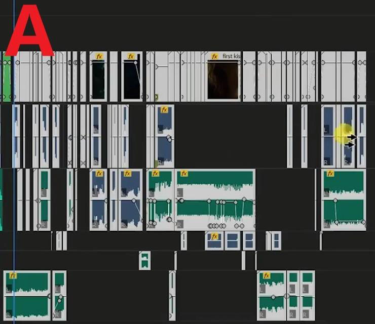 当我们需要在大量的剪辑内容中插入一个视频的片段的时候。一般需要选中整个后半部分来给素材同出位置。但是很容易漏选或者是多选。这个时候你可以按住快捷键A,向后选择轨道工具。然后再点击你想要移动的地方,这个时候你就可以选中后面所有的音视频啊。