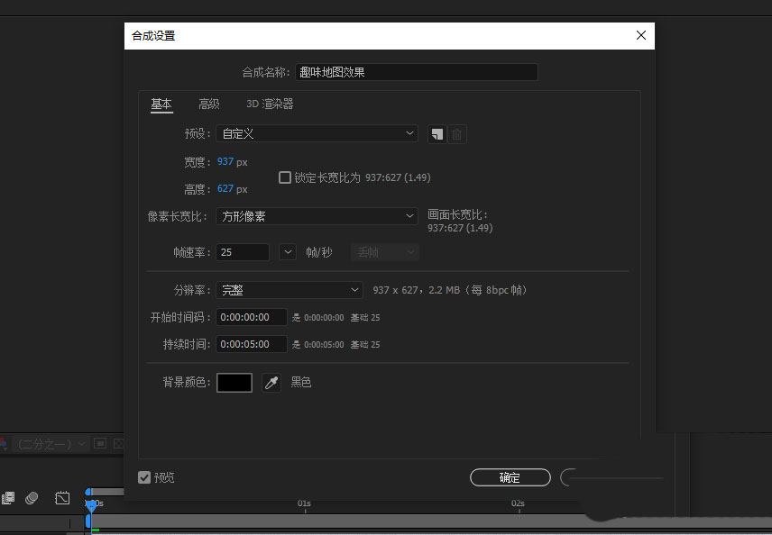 1、打开AE软件,命名趣味地图效果,调整相应的参数。