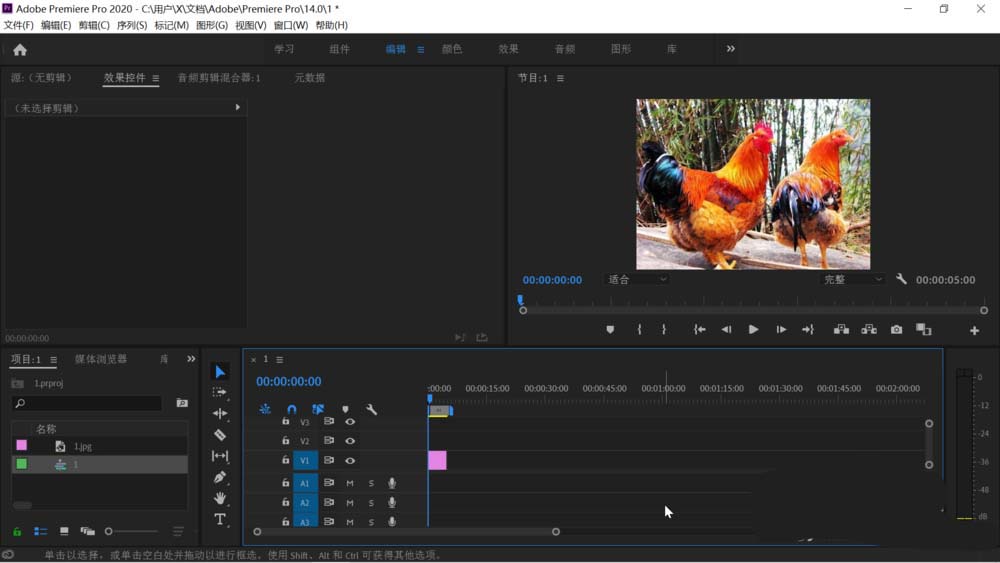 1、打开pr,把最后要显露出来的照片导入后拖动到时间轴上。