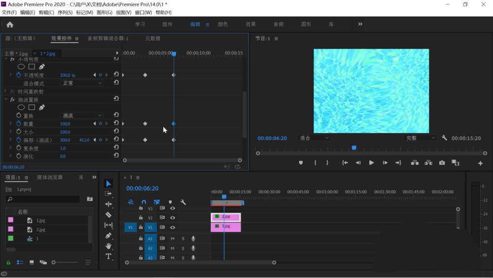 pr cc 2020中想要制作一个图片显示的动画效果,该怎么制作海浪翻滚之后透出图片效果呢?我们需要使用了一张海水照片结合湍流置换和不透明度关键帧设置达到这个效果,下面我们就来看看详细的教程。