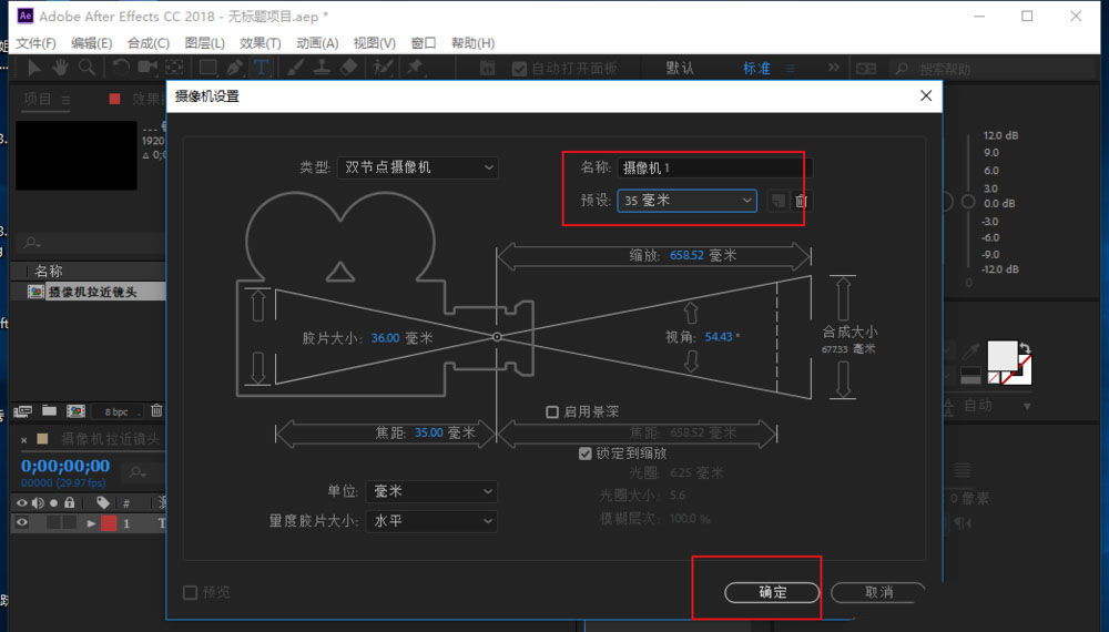 5、设置摄像机的参数,任意即可,设置好点击【确定】。