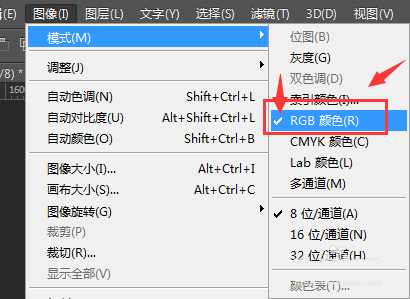 2、点击“图像-模式”,模式改为RGB颜色即可。
