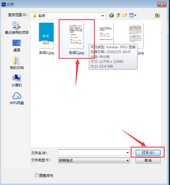 3、在弹出的窗口点击选择要编辑的图片,然后点击“打开”。