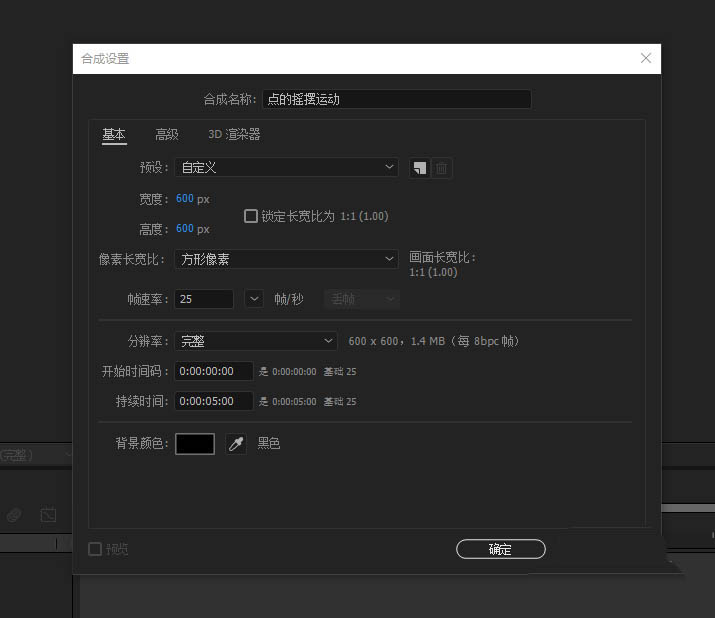 1、打开AE软件,命名点的摇摆运动,调整相应的参数。