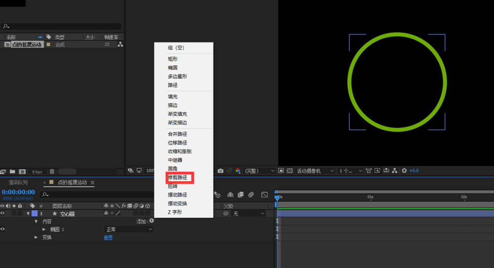 3、选中空心圆添加修剪路径;