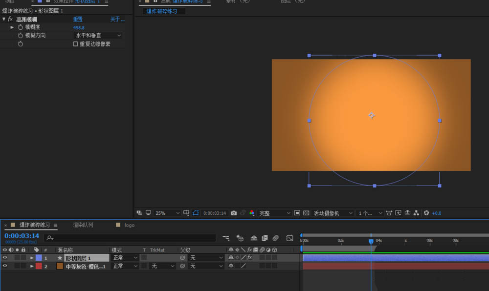 2、ctrl+y新建一个纯色层,充当背景层,然后选择椭圆工具绘制一个正圆,给正圆添加高斯模糊效果,提亮背景效果;