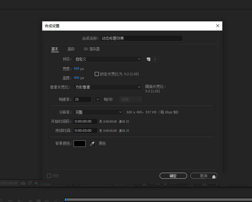 1、打开AE软件,命名动态标题效果,调整相应的参数。