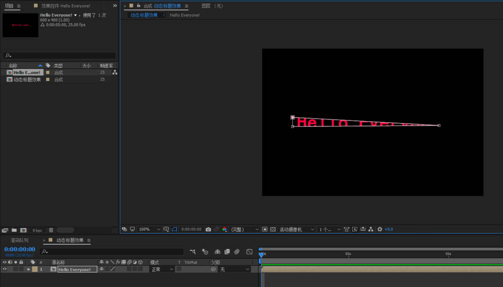 3、选中文本预合成,用钢笔工具绘制三角形蒙版;
