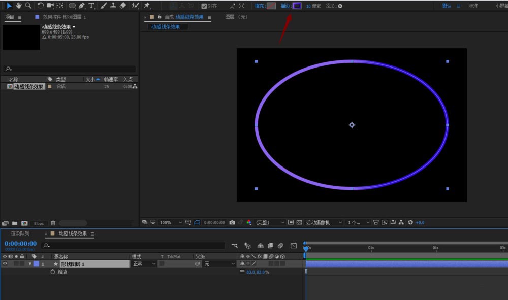1、打开AE软件,命名动感线条效果,调整相应的参数。