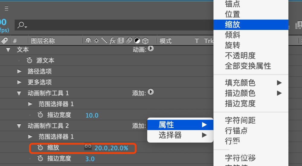 5、然后在第二个描边宽度中添加一个缩放,将数值更改为20%。