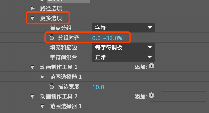7、在更多选项中选择分组对齐,将数值更改到合适。