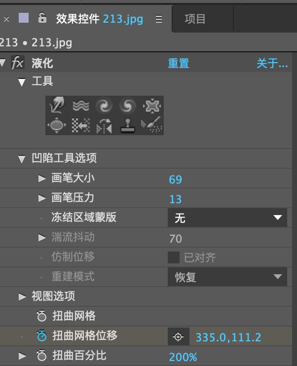 5、最后在扭曲网格位置的码表处打上关键帧,做动画效果即可。