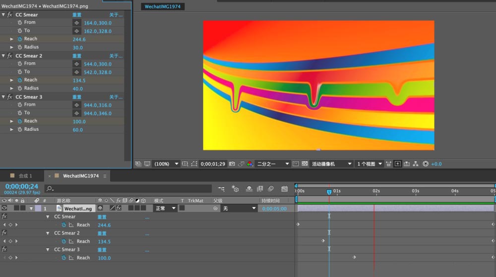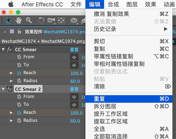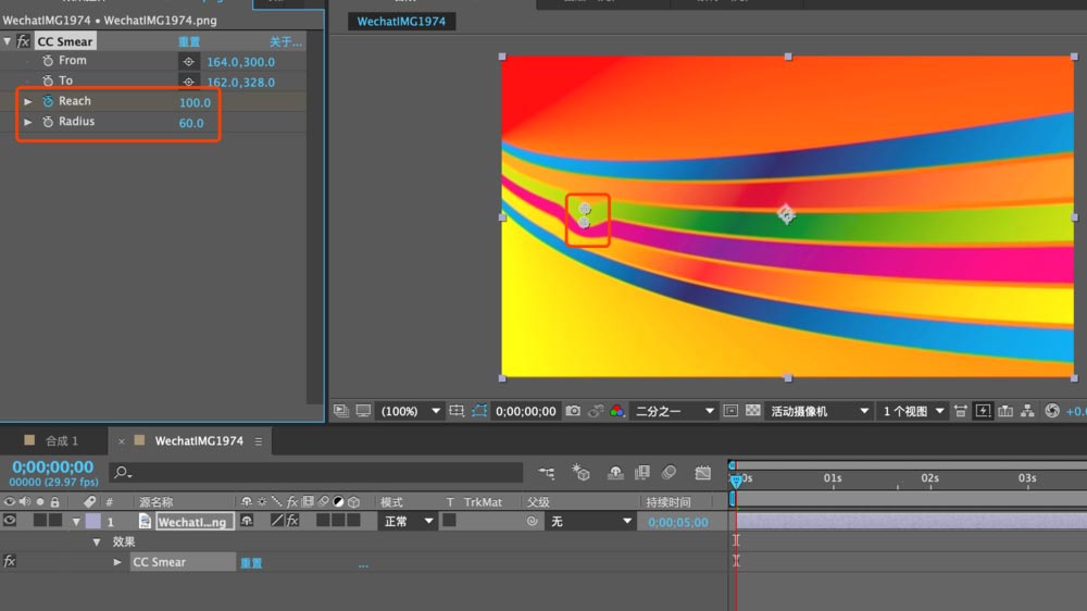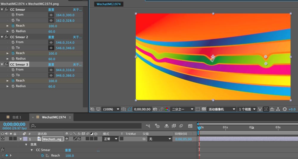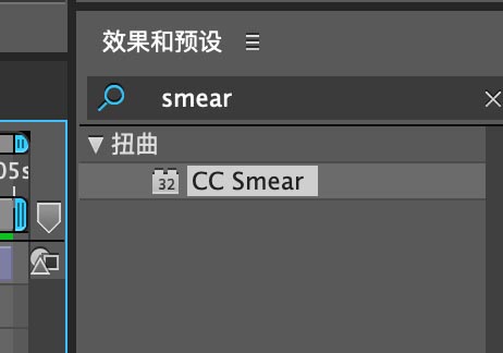 3、在效果与预设里面搜索smear。效果--扭曲--cc smear。