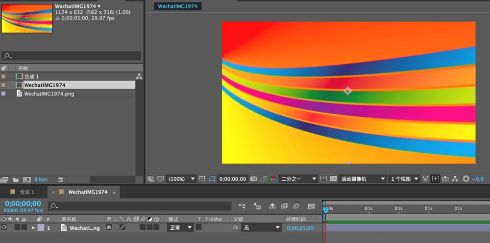 2、打开ae软件,新建一个合成,将素材导入,拖动到合成编辑区域。
