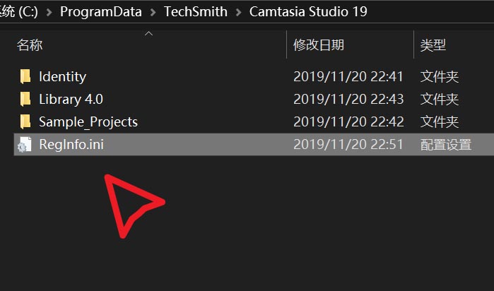 6、这时候,打开C盘隐藏文件Program Date 下 TechSmith,下的Camtasia文件夹,如图。找到.ini文件