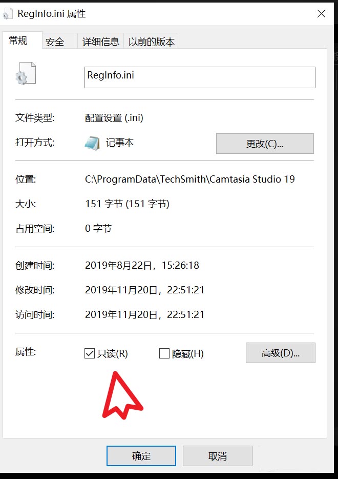 8、右键属性,选择,只读。再次打开Camtasia Studio就激活了。
