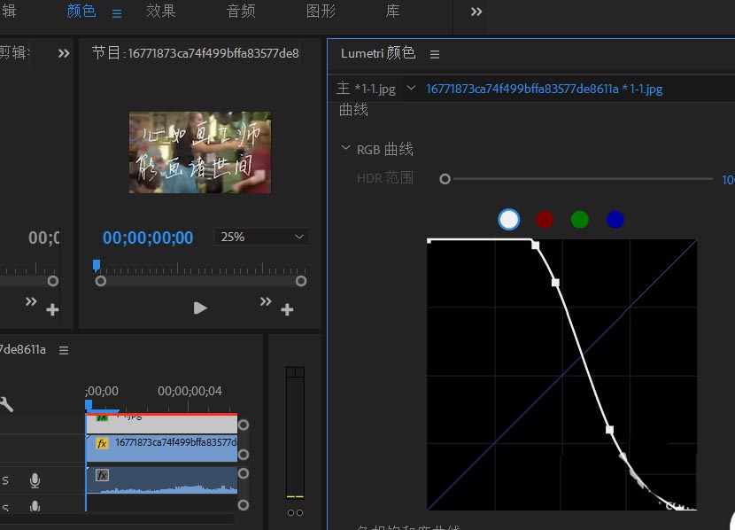 3、在颜色面板中找到“曲线”调节曲线为“S型”