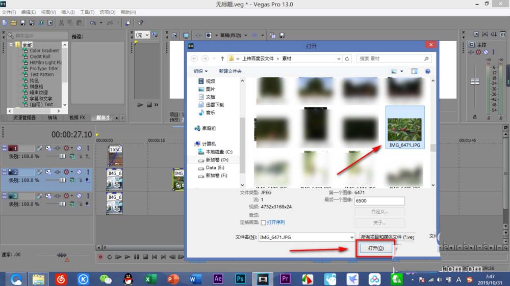 2、按住快捷键Ctrl+O打开文件——选择——素材——打开。