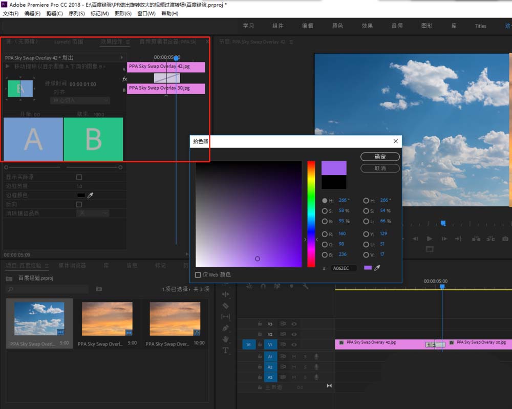 Premiere两个视频怎么添加白场过渡效果?