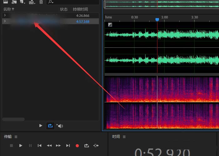 3、然后单击要粘贴的音频文件后再频谱中要粘贴的位置。