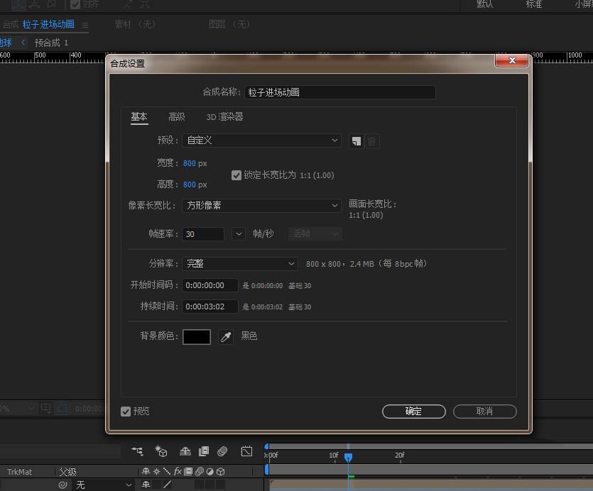 1、打开AE软件,命名粒子进场动画,调整相应的参数。