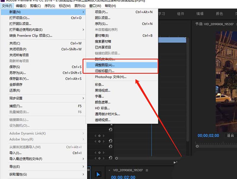 2、鼠标左键单击文件菜单栏,选择文件菜单栏中的新建命令,新建一个调整图层。