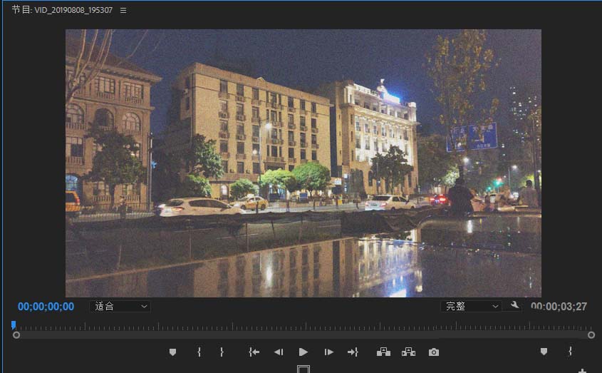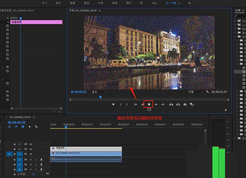 6、点击播放视频按钮,来播放预览设置杂色后的视频效果,就能看到一个雪花颗粒感的视频画面效果了。