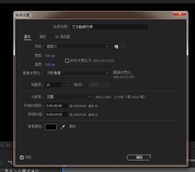 1、打开AE软件,新建合成,命名文字翻牌效果,调整相应的参数。