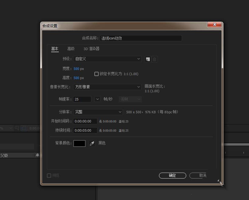 1、打开AE软件,新建合成,命名连线icon动效,调整相应的参数。