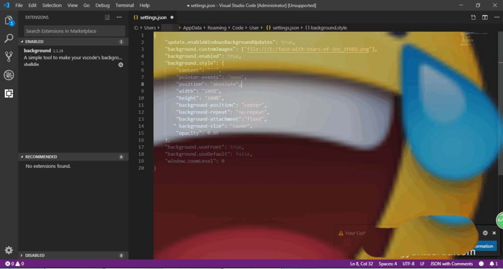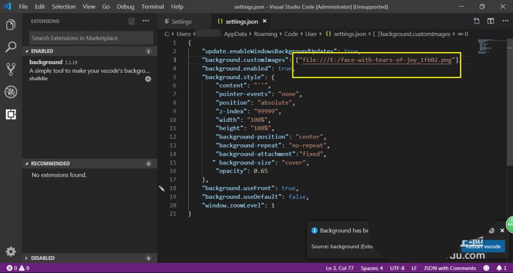 以上就是vscode设置背景图片的教程,希望大家喜欢,请继续关注武林网。