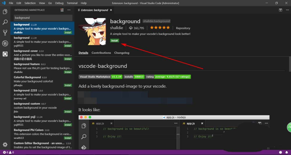 vscode背景图片是可以自己设置的,软件安装后默认背景的颜色是黑色的,这是默认的设计,如果要修改背景为指定的图片,那么我们需要安装插件,然后再通过代码来设置背景图片的样式,下面我们就来看看详细的教程。