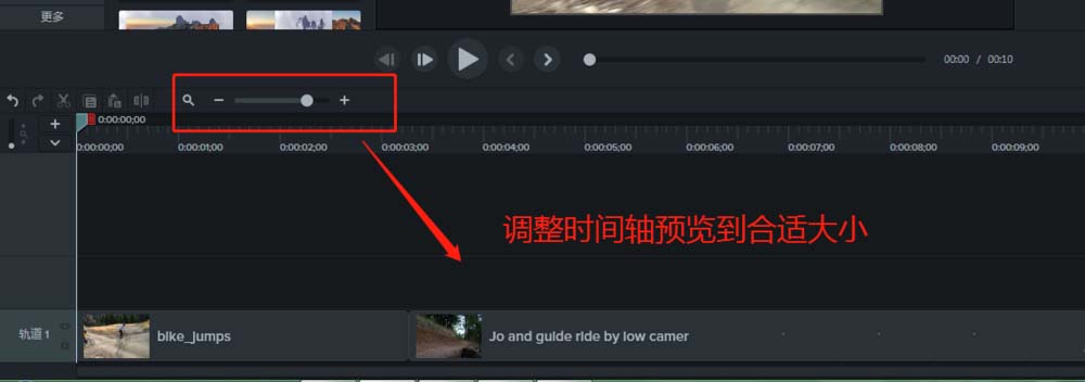 4、选择控制缩放时间轴窗口预览的按钮命令,点击放大时间轴窗口预览到合适。