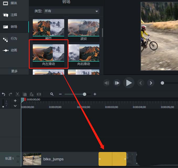 以上就是Camtasia9给素材添加向左滑动的转场效果的教程,希望大家喜欢,请继续关注武林网。