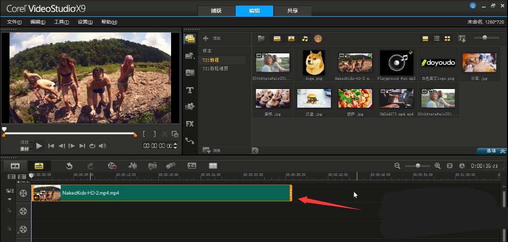 1、打开会声会影软件,小编用的是x9,你不是也没关系,软件版本不同但操作都是差不多。添加一个视频到时间轴。