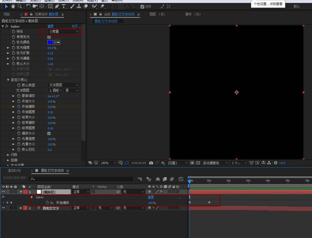 7、预设选择小度量,给开始偏移k关键帧,开始为100%下一帧为0;
