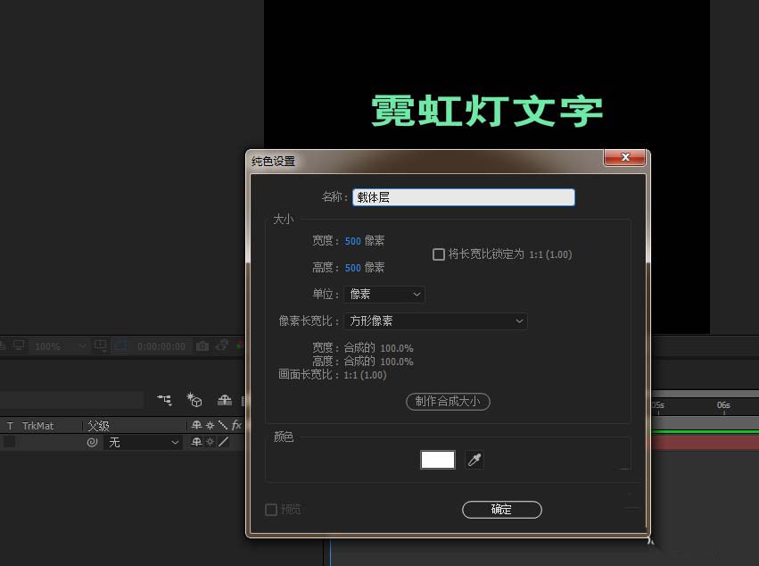3、ctrl+y新建一个纯色层;作为效果的载体层;