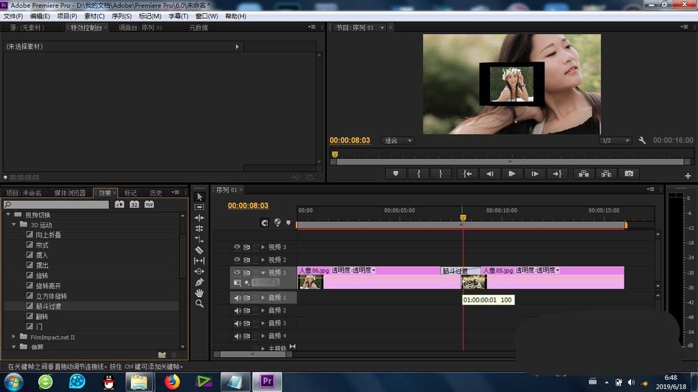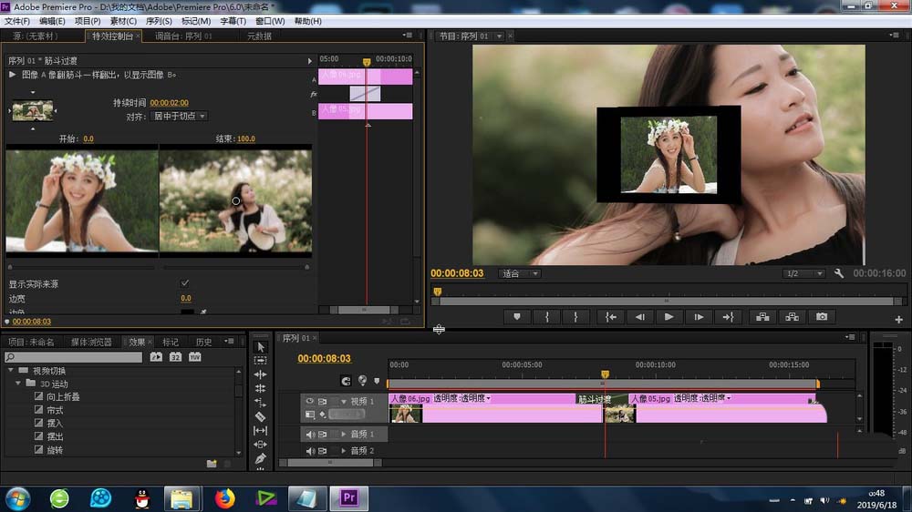 以上就是premiere给素材添加筋斗过渡效果的教程,希望大家喜欢,请继续关注武林网。