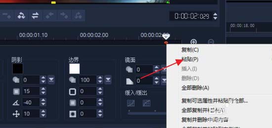 7、然后,我们用鼠标右键点击这个结束位置的关键帧。这个时候,我们就看见有个粘贴功能。