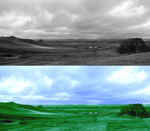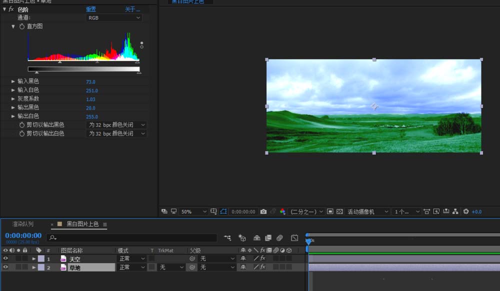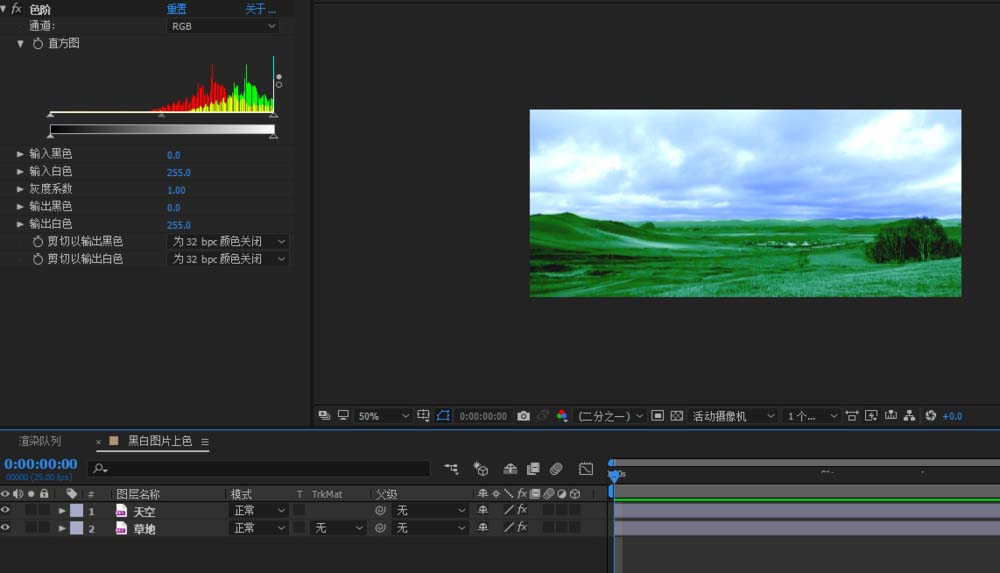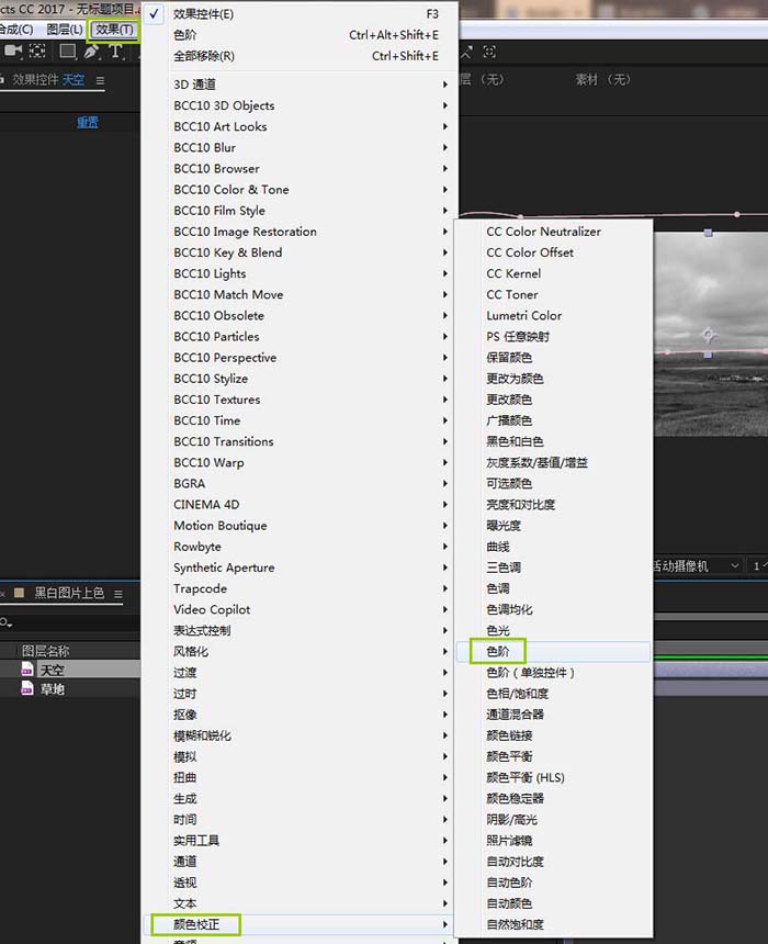 4、分别给天空和草地添加色阶功能;效果-颜色校正-色阶;