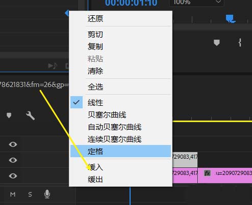 8、找到第一帧关键帧,右键选择缓入,第二帧缓出