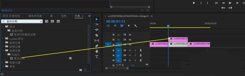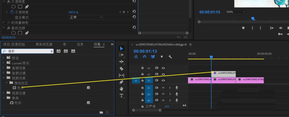 3、为了排除多余色彩,效果栏找到色彩拖过去