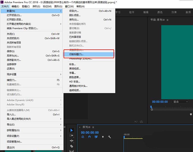 4、单击文件菜单,在文件菜单中选择新建中的旧版标题选项。