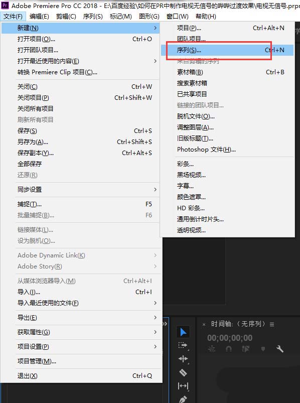 1、打开Premiere这个视频后期剪辑软件,执行文件菜单,在文件菜单中找到新建命令,新建一个PR项目。