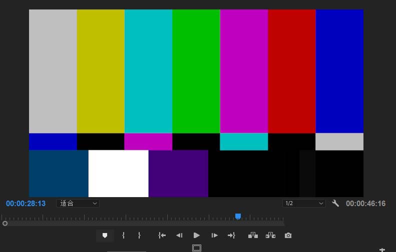 5、放大时间轴,将时间轴播放线移动彩条的位置上,就可以在画面中预览无信号电视的哔哔音效的效果。