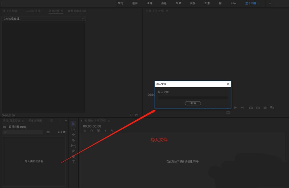 1、打开Premiere软件之后选择新建项目,然后执行导入命令,导入需要进行处理的文件。