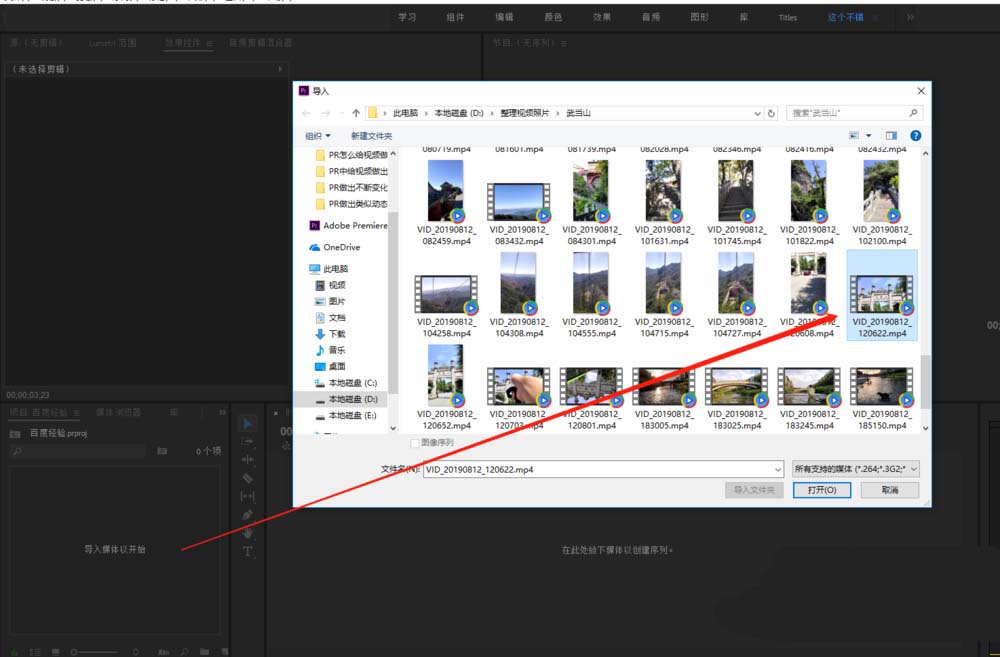 1、找到安装好的Premiere软件,启动PR软件并新建一个项目,然后在项目窗口双击鼠标左键执行导入命令,选择视频文件导入到PR项目中。